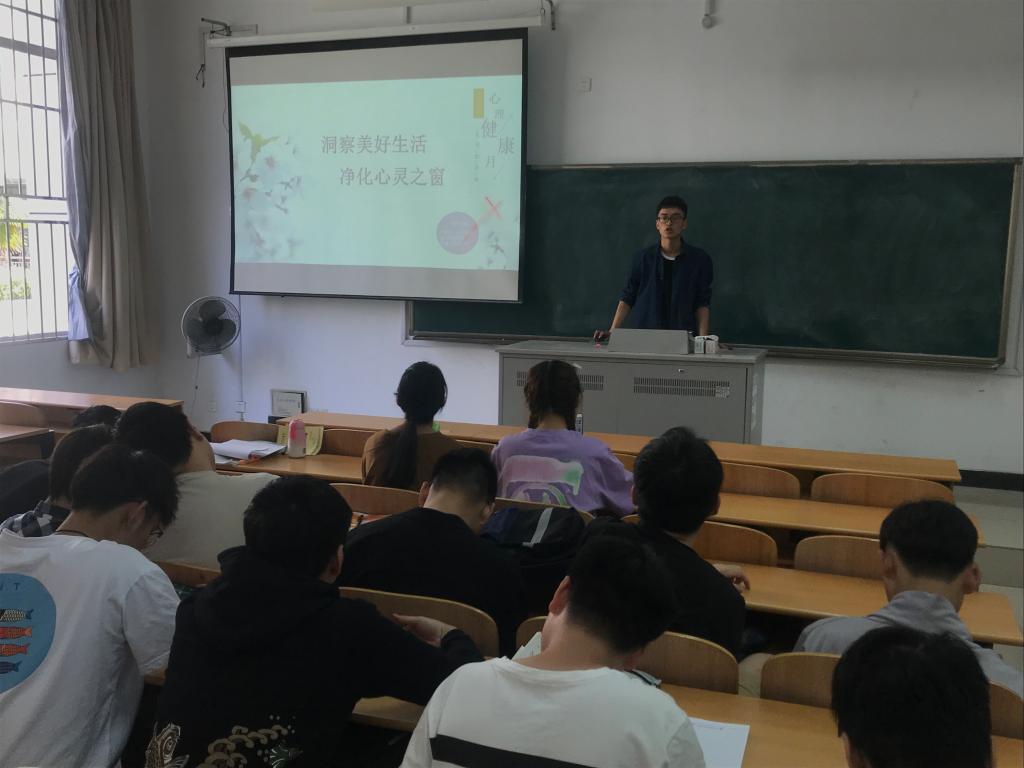 5月17日-5月20日各班以班级为单位召开心理主题班会,班级心理委员向同学们讲解常见不良心理倾向和常用的心理调适方法等心理自助知识,并向同学们宣传了大学生心理援助途径。