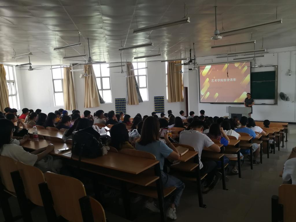 为进一步加强学生公寓文化建设,营造良好的公寓文化氛围,充分发挥公寓文化的育人功能,推动优良学风建设,艺术学院于6月4日在6300教室召开2018-2019-2学期宿舍表彰会,会议由辅导员陈烨主持 。