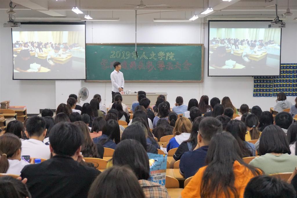 5月30日下午6:30,人文学院在图教楼B205召开了“2019年人文学院学风建设表彰、警示大会”,以此表彰那些在学风建设中表现突出的集体和个人。 人文学院党委副书记周建峰书记、人文学院学工办副主任高欢欢老师、人文学院辅导员汪新老师出席本次大会,各班代表参加大会。