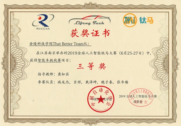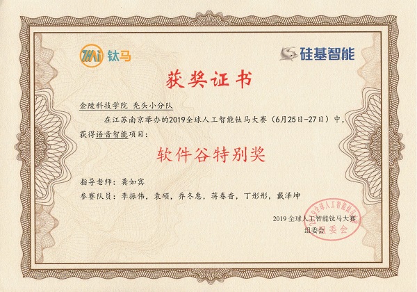 2019中国(南京)软件谷全球人工智能钛马大赛(邀请赛)于6月25日在软件谷云密城开赛,软件工程学院、网络安全学院学生赛队在大赛荣获语音智能项目软件谷特别奖和智能车挑战赛项目三等奖。
