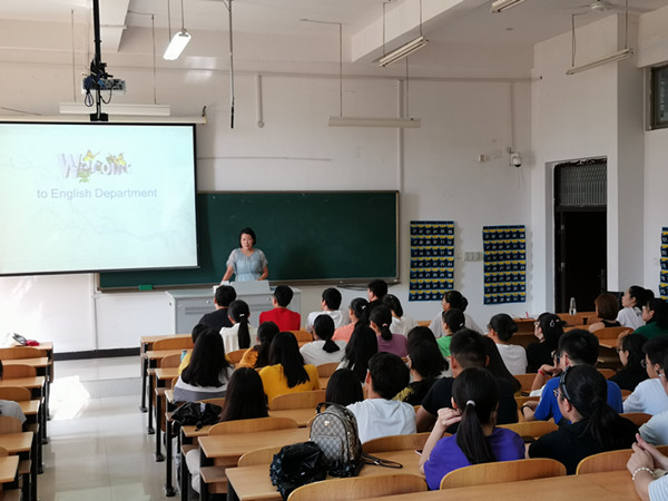 外国语学院教研室主任李凤老师用全英文给同学们带来了一堂专业认知教育课,告诉新生们本专业所必备的基本素养,以及日后需要提升的能力。同时李老师还分享了一些英语学习的小技巧,帮助同学们以后更好的学习英语。接着,李老师向同学们介绍了英语专业未来的就业方向,让同学们提前了解就业岗位和环境,以便同学们的目标和方向更加清晰。除了专业内容的介绍,李老师还就日常生活方面给了新同学们一些建议,比如如何处理宿舍关系,如何在情感上学会独立等。