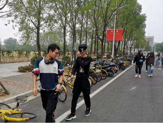 网通学院党委副书记涂远参加了此次活动,同学们两人一组,分为十组。活动开始,十组人同时出发,先由一人用眼罩为工具蒙住眼睛当“盲人”,另一人当引路者。由北区旗杆为始,途经一号楼前的圆盘后再返回北区旗杆后,两人交换身份,再按原路线返回起点。用时最短的一组获胜。这就要求了引路人在发指令时要简单准确,体谅另一位同学,也要求了扮演”盲人“的同学要信任引路的同学。