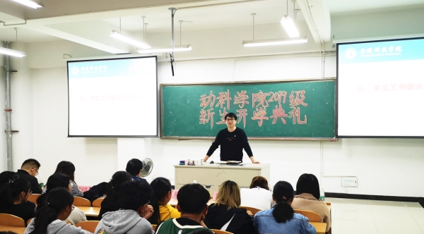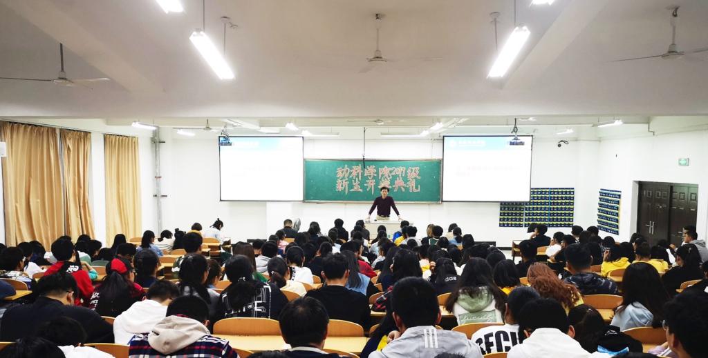 10月14日晚上,动物科学与技术学院2019级新生开学典礼在幕府校区图教楼举行。院党委书记王昭诚,院长戴鼎震,党委副书记汪如春,副院长程泽信,院学工办辅导员,19级班主任代表出席本次会议。