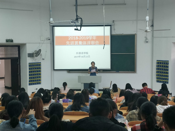 10月23日下午,外国语学院在7100教室召开了2019年先进班集体评选会。学工办副主任王奕,团总支书记杨婷,全体班主任以及17级、18级、19级全体学生参加了会议。
