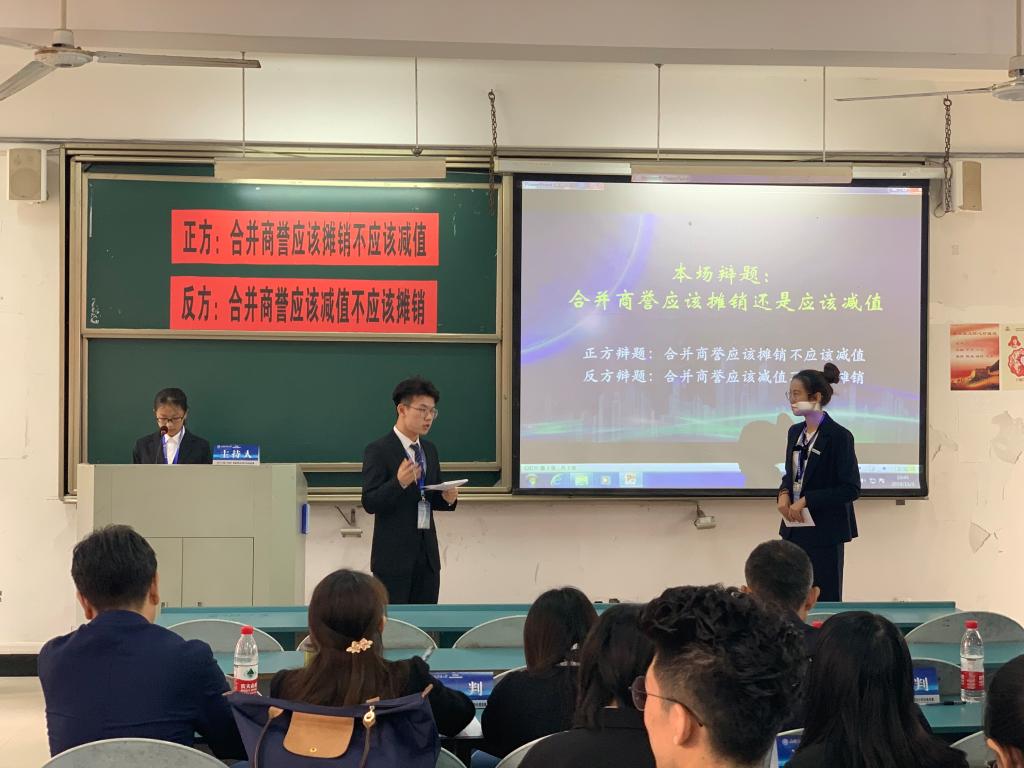 本次比赛,商学院邀请了团委的常蒙老师担任辩论技术指导教练,会计系多名老师提供辩论内容专业知识指导,从全院学生中挑选出具有辩论赛经验的8名学生参加训练,并最终从中选拔出17会计3班江恬、17会计4班黄慧慧、17会计2班王海涛、17财务管理张文秀,共4名学生组成参赛代表队。最终我院代表队获得了团体优胜奖,江恬同学获得了最佳辩手奖。