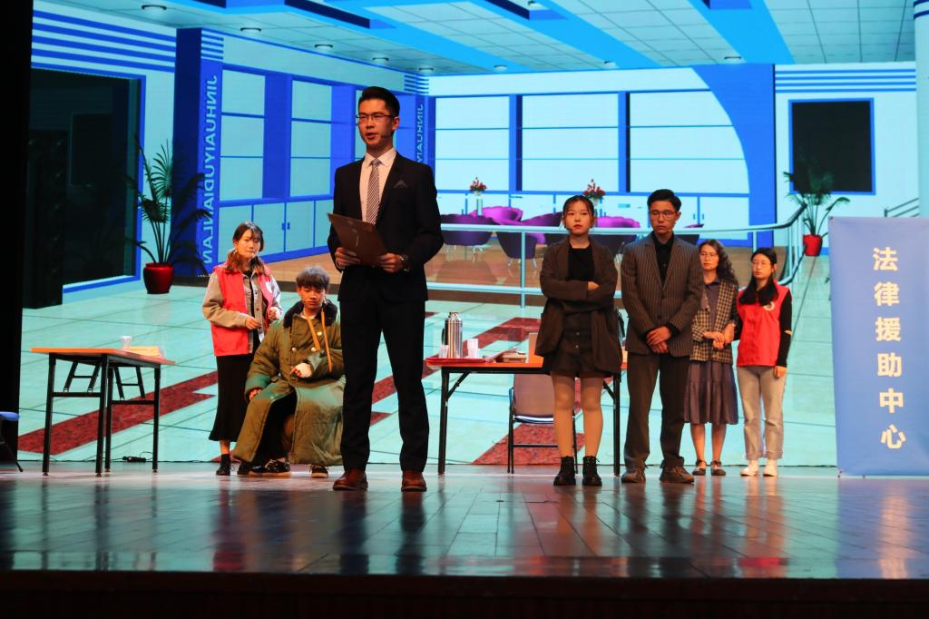 本次展演由南京大学、南京师范大学、南京审计学院等八支参赛,分别以“法律援助”为主题进行了法治情景剧的比拼。由我院17行政管理王业薪同学和17秘书学郭维贤同学原创的情景剧《困境》,讲述了因工受伤的林师傅在郑和广场上寻求法律援助时,受到我院青年法学会志愿者帮助,并在律师指导下,坚定了维权信心,并维权成功的故事。从中也使志愿者们理解了身为法律人所应承担的使命,决心为维护社会公平正义的而努力学习。最终,我院情景剧获得了第二名的好成绩,开云在线荣获优秀组织奖。同时,我院学子还精心准备了独唱《贝加尔湖畔》、舞蹈《水墨江南》、《汉韵霓裳》,为当晚的展演增添了别样精彩。