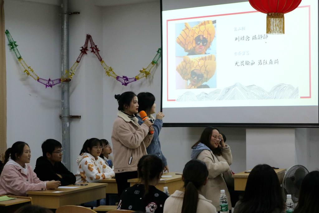 经过初赛和复赛选拔,九组共十八名选手进入决赛环节。比赛伊始,选手们通过独具特色的自我介绍,展示了参赛的必胜信心。接下来第一轮环节,填写词语汉字,选手们奋笔疾书,心无旁骛,现场气氛逐渐紧张,“纵横捭阖”“兄弟阋墙”等词难倒了一众选手,考察“寄意寒星荃不察,我以我血荐轩辕”这样经典诗词的识记,也让一些选手感到熟悉又陌生。随后晋级进入第二轮比赛的四组共8名选手进行一对一轮流答题,四组选手皆博闻强识,互不相让,轮流竞答文学常识题目,随后第一组与第八组选手略胜一筹进入最后一轮比赛。在第三轮比拼中,题目更加复杂多样,听写词语、成语、文常竞答题目让选手目不暇接。四名选手依次答题,高潮迭起,比赛进入胶着状态,无法决出胜负,进入了加时赛。在第一轮加时赛中,面对难度愈增的题目,四名选手仍不分伯仲,再次得出了并列第一的意外局面。在第二轮加时赛,两位选手进行抢答,场面更加激烈。最终一题:“《诗经》中的诗歌,共分为‘风’、‘雅’、‘颂’三类,其中属于民间歌谣的是哪一类?”角逐出第一名,最终选手周萌萌同学拔得头筹,陈奎倩、刘雅婷、高世杰同学获得二等奖,其余选手均获得三等奖。