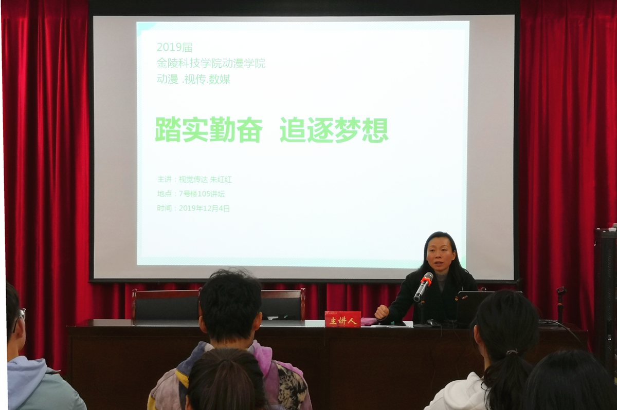 12月4日,动漫学院在7105,邀请了视觉传达设计系朱红红副教授,给同学们做了题为“踏实勤奋,追逐梦想”的交流报告。在活动中,朱红红老师向大家展示了许多优秀的课程大作业,包括入围比赛获奖的文创作品设计。这些作品中,有以家乡背景为题材,融入了自己对家乡的热爱与自豪;有从文化遗产和著名建筑中提取元素,多角度展现中国艺术文化的精美与博大。台下的同学们聚精会神地听着讲座,积极地思考问题,被获奖的文创作品所深深吸引,并产生由衷的赞叹。最后,朱教授向同学们提出了几点希望:第一,要认真对待每一次的作业,秉持术业专攻的匠心,在大学的四年中学好本专业的知识;第二,可以充分利用网络资源,多汲取课外知识;第三,在日常的空余时间中要多出去走走,拓宽自己的视野,杜绝自我限制的情况。