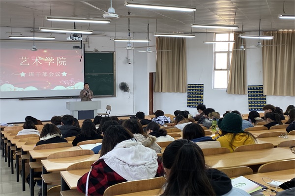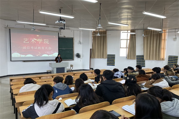 12月12日中午12点30分,艺术学院在6300教室召开学生骨干培训暨诚信考试教育大会。艺术学院辅导员丛扬子、陈烨、刘国英与全院学生主要班干部、学生党员参加此次会议。
