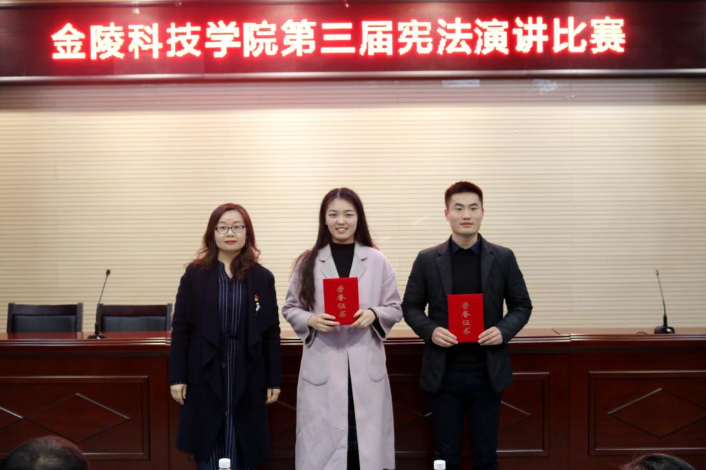 本次比赛共有12位来自各个专业、各个年级的选手参加。12场慷慨激昂的演讲向我们展示了金科学子对于宪法最真挚的情感,12位选手声情并茂的演讲向我们展示了金科学子的青春活力,12次此起彼伏的掌声更是对每一位选手最大的肯定。其中,杨兵同学结合自身的入伍经历向我们诠释了宪法与我们每个人的关系;杨钰婧同学以一句‘宪法很轻,只有六十多页;宪法很重,是祖国最根本的法律’形象地诉说了宪法的重要性。比赛中途的宪法小知识问答环节更是调动了在场每一位观众的热情。最终杨兵、黄妍捷两位同学获得了一等奖。张远凤部长最后的精彩点评,更为本比赛画上了完美的句号。