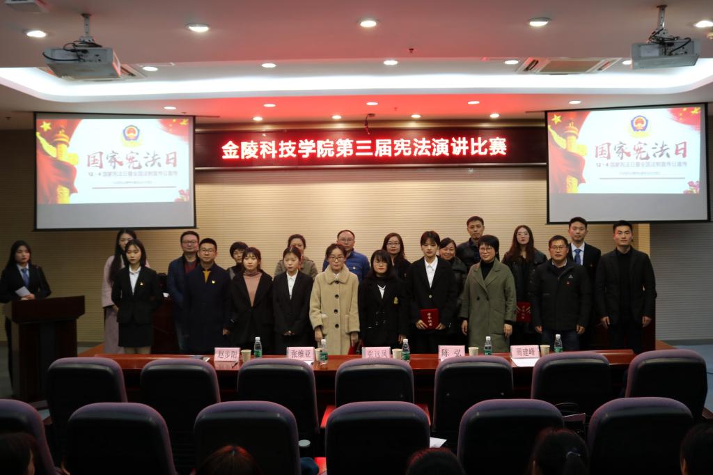 为积极响应国家宪法日, 12月11日下午3:00,我校在幕府校区图书馆报告厅举行了以“新时代的主旋律——让宪法成为你我的信仰”为主题的第三届宪法演讲比赛,本次大赛由人文学院主办。莅临本次比赛的领导有党委宣传部部长张远凤、人文学院党委书记陈弘、院长张维亚、院党委副书记周建峰、副院长赵步阳。担任此次比赛评委的有人文学院行政管理系主任刘霆、我校普法志愿者大队指导老师戴仁荣、行政管理系教师郭秉菊、丁芳、谢飞。