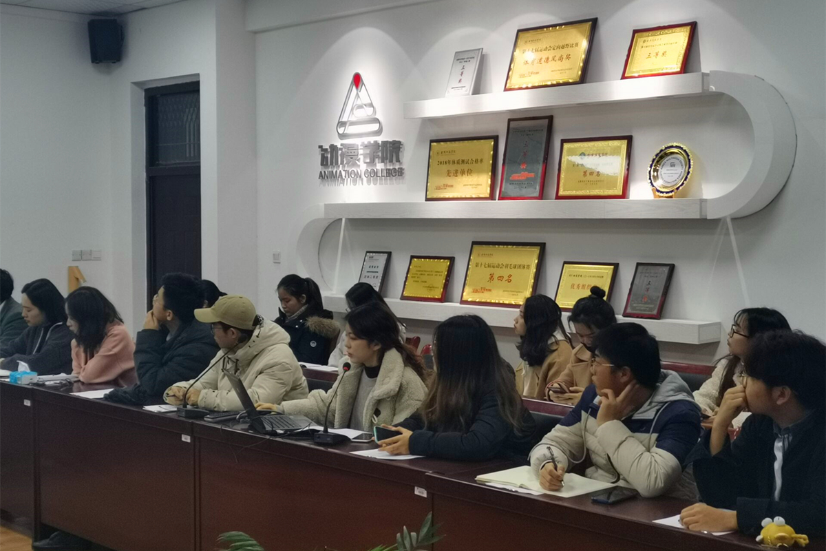 12月17日中午,动漫学院在7406会议室,召开了2019年度学院学风建设优秀集体朋辈榜样报告会。动漫学院党总支部副书记、副院长匡才远,辅导员聂钰石老师,班主任代表王月恒老师,2019年度省级“先进班集体”16数字媒体艺术(1)班班长吴欣媛同学及全院各班代表参加了会议。