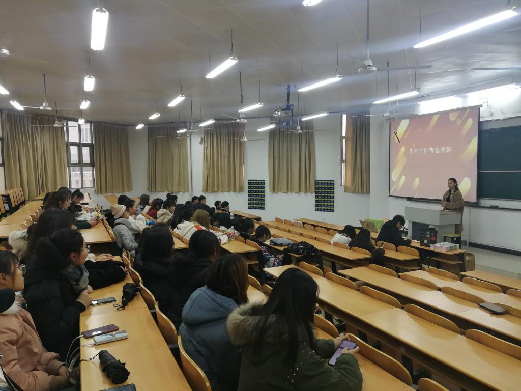 为进一步加强学生公寓文化建设,营造良好的公寓文化氛围,充分发挥公寓文化的育人功能,推动优良学风建设,艺术学院于12月17日在6300教室召开2019-2020-1学期宿舍表彰会,会议由辅导员陈烨主持。