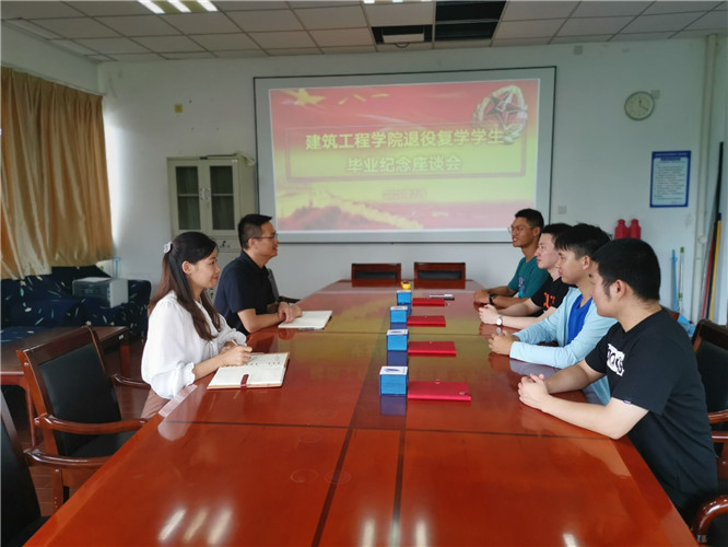 7月6日中午12:30,建筑工程学院在工科楼B502会议室召开学院退役复学学生毕业纪念座谈会。退役复学毕业生、征兵工作负责辅导员宋向参加,学院党委副书记张乐乐出席。