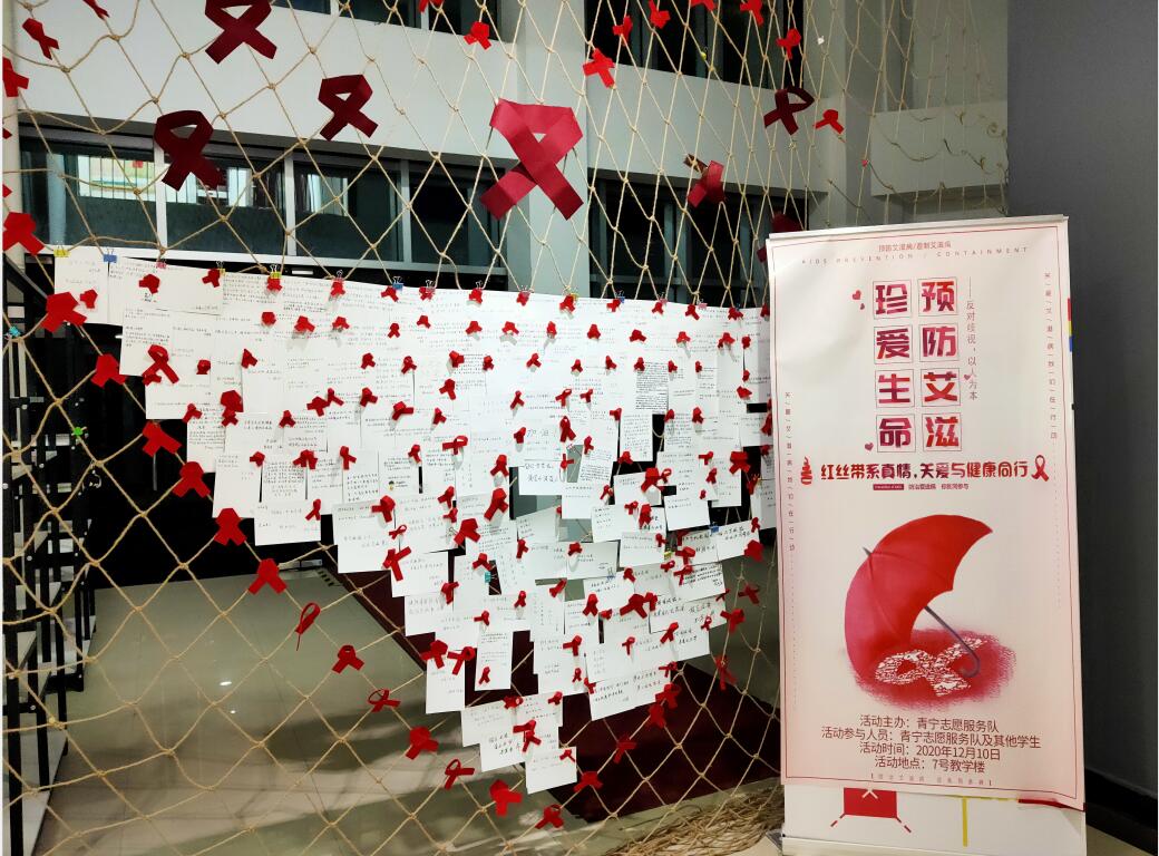 红丝带象征着人们对艾滋病病毒感染者和艾滋病病人的关心和支持。此次系列活动的举办,让同学更好地知道艾滋病防治的重要性,增强自我保护意识和抵御艾滋病侵袭的能力。让红丝带飘满校园,让关爱飘进学生心里。(审稿人:李海晶)