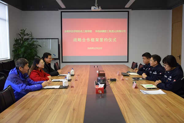 12月23日,机电工程学院与华伟纳精密工具(昆山)有限公司在昆山华伟纳公司签订校企合作协议,就人才培养、基地建设、实习就业等领域开展全面合作。华伟纳精密工具(昆山)有限公司总经理周艳君、人事行政部经理朱娟、机电工程学院党委副书记张蓉、机械工程系李晓晖、茅军等出席签订仪式。