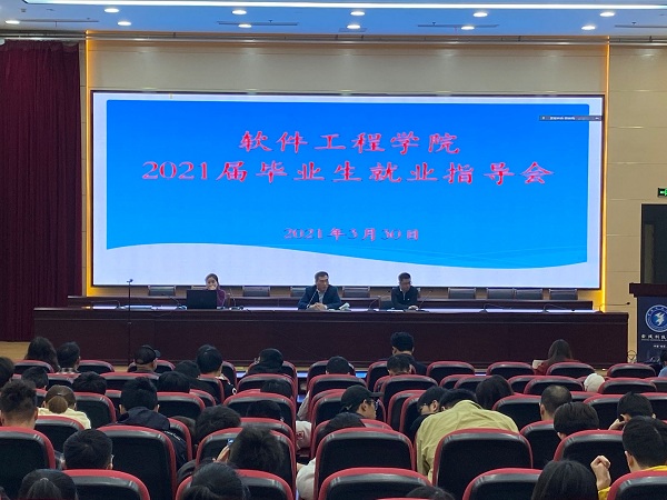 3月30日下午,软件工程学院在科技楼报告厅召开2021届毕业生就业工作推进会,为方便未返校学生,本次会议采用线下、线下相结合形式。院党委书记徐志国、副书记徐斌、就业干事、毕业班辅导员、班主任及2021届全体毕业生参加会议,会议由副书记徐斌主持。