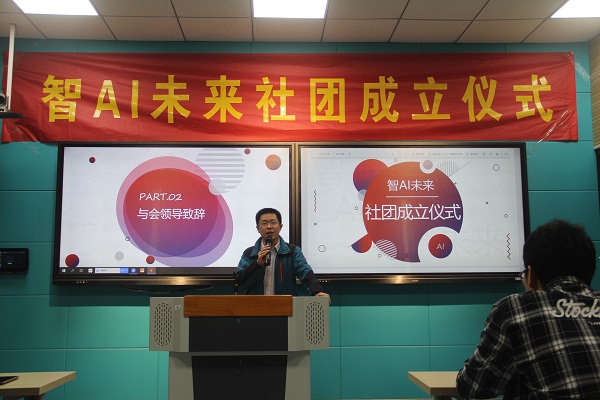 首先,智能科学与技术系主任赵海峰介绍了社团对学习氛围的推进作用,并希望同学们能够有充分的激情加入社团这个大家庭,努力推动社团建设。指导老师和社团负责人详细介绍了“智”AI未来社团的定位、目标及接来来开展的有影响、有特色、有创新的社团活动。