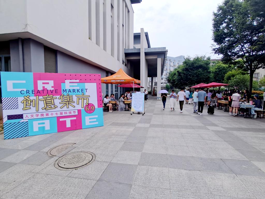 为丰富大学生的课余时间,营造浓厚的课外学习与创新的氛围。6月9日中午12:00,人文学院科创部在图书馆门前举办了创意集市活动。院党委副书记韩铖,学工办主任童明明、副主任高欢欢、辅导员梅冬琴,与各年级学生代表参加了活动。
