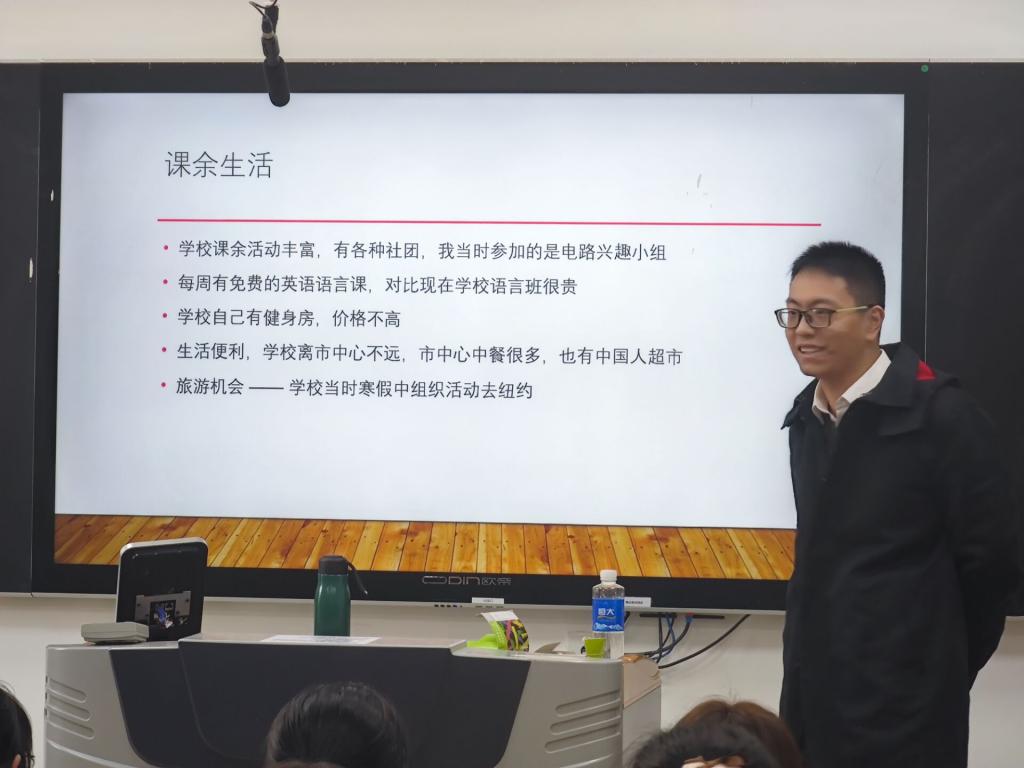 为了帮助中英通信工程项目学生了解跨境教育,尽早做好学业规划,国际教育学院于11月12日邀请2013级中英通信工程项目优秀毕业生洪盖鑫在8号教学楼104教室进行经验交流会,2021级中英通信工程项目学生参加了此次活动。