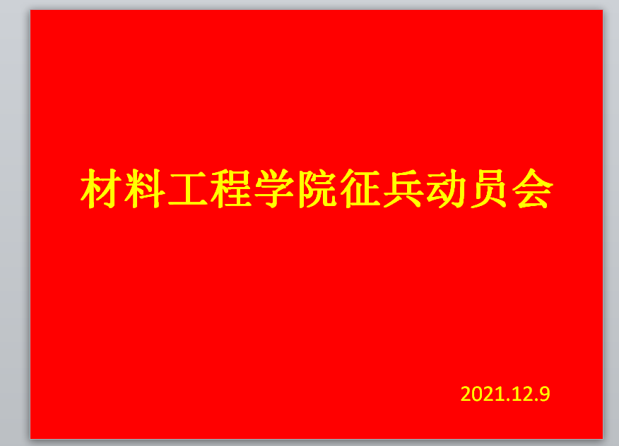 为了国防需要,响应国家号召,积极储备部队人才,也为了推动我校学生的全面发展,将优质青年学生送入部队发展,材料工程学院12月9日通过线上会议,召开征兵动员会。会议由材料工程学院辅导员王亚男主持,我院全体班长和学生代表参加。