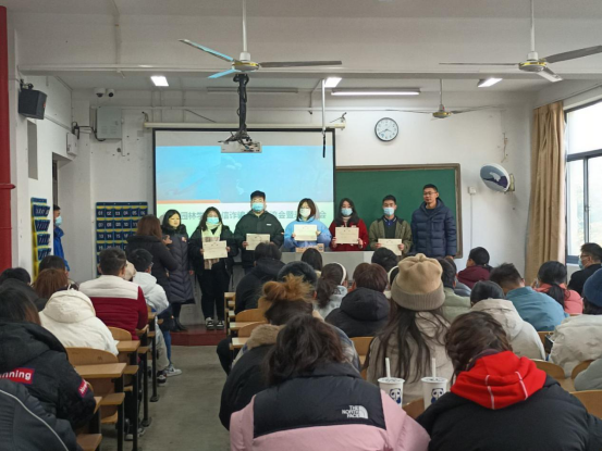大会由主持人甘黎明副书记上台发言做活动总结,她肯定了我院同学在预防电信诈骗中的表现,希望大家继续保持;党委保卫处范小春副处长分析了栖霞区高校电信诈骗的新形势,总结了我校学生在电信诈骗当面的现状,号召同学们提高警惕,捂好自己的“钱袋子”;接着由两名学生代表发言,他们介绍自己对电信诈骗的认识;最后由甘黎明副书记和范小春副处长上台为表彰同学颁奖并合影留念。