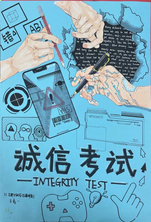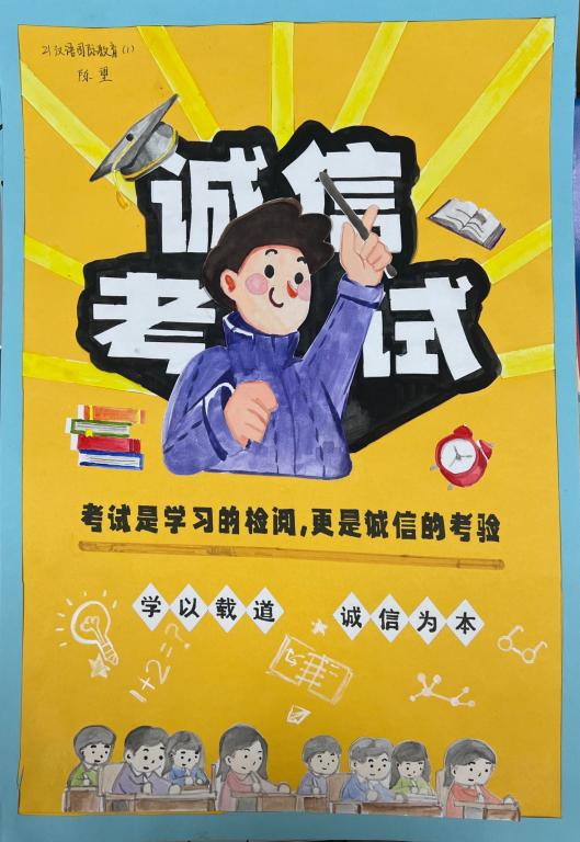 本次活动主要分为两个部分。一是线上知识问答。依据《学生指南》设置题目考核,涵盖考场纪律、作弊行为分类,违纪处分等多方面。各个年级积极配合本次诚信考试知识答题,由班长组织答题,全院考试均分达到90以上。二是线下手绘评选。通过进班宣传和线上征集一共收集到17份作品,在幕府校区图书馆前进行悬挂评选,同学们积极参加,仔细观看每一幅作品,并在对应的作品下进行签字投票。共有376人次参与评选,最终六幅优秀作品获奖。