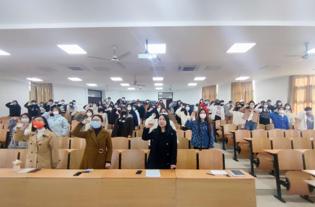 随后,全体师生志愿者起立,右手握拳,诚挚宣誓,庄重许下对本次支教活动的期许和承诺。