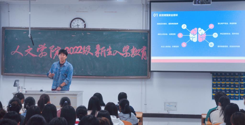 10月5日晚,在幕府校区图教楼205、305教室,人文学院举办了2022级新生入学教育活动。此次入学教育活动旨在引导同学们坚定理想信念,找准目标定位,尽快适应大学新环境新生活。辅导员童明明老师、高欢欢老师、马思齐老师、汪新老师、杨一鸣老师作为主讲人与全体400余名学生参加了活动。