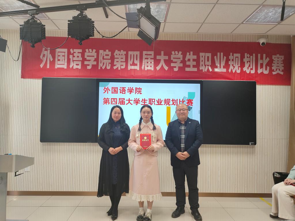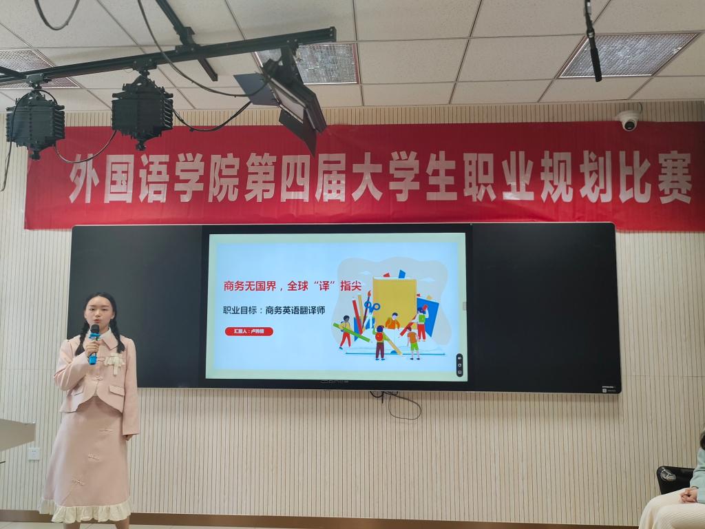 为普及生涯规划知识,传播生涯成长理念,提升学生的实践能力和就业能力,10月12日下午,外国语学院在8305教室举办了一场以“生涯逐梦,职赢未来”为主题的大学生职业规划比赛。本次比赛邀请了江苏领航集团校园事业部总经理、职业生涯认证规划师周建政,外国语学院党总支部书记李星,学工办主任王奕,团总支部书记杨婷,以及外国语学院黄浩、傅秀娟、宗小琦、耿小龙等四位老师担任评委。外国语学院2021级、2022级约50名学生到场观摩比赛。