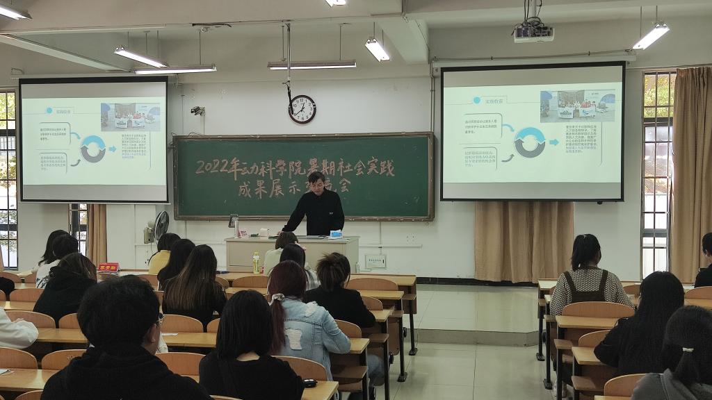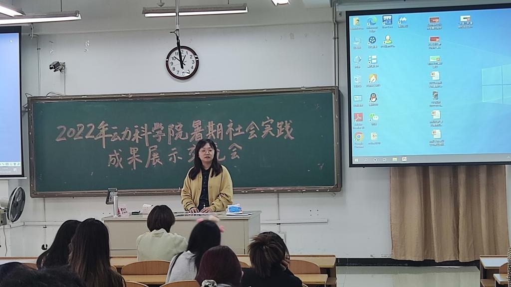为进一步巩固暑期社会实践活动成果,继承发扬“受教育、长才干、做贡献”的精神,交流和推广社会实践先进经验,我院于10月21日中午12:00在图教楼B105举办以“青春献礼二十大 携手奋进新征程”为主题的2022年动科学院暑期社会实践成果展示交流会。本次活动由学院团总支主办,出席本次交流会的有学院党委副书记黄淑婧,学工办副主任李青励,团总支书记吴旖旎,以及21级、22级各班学生代表们。