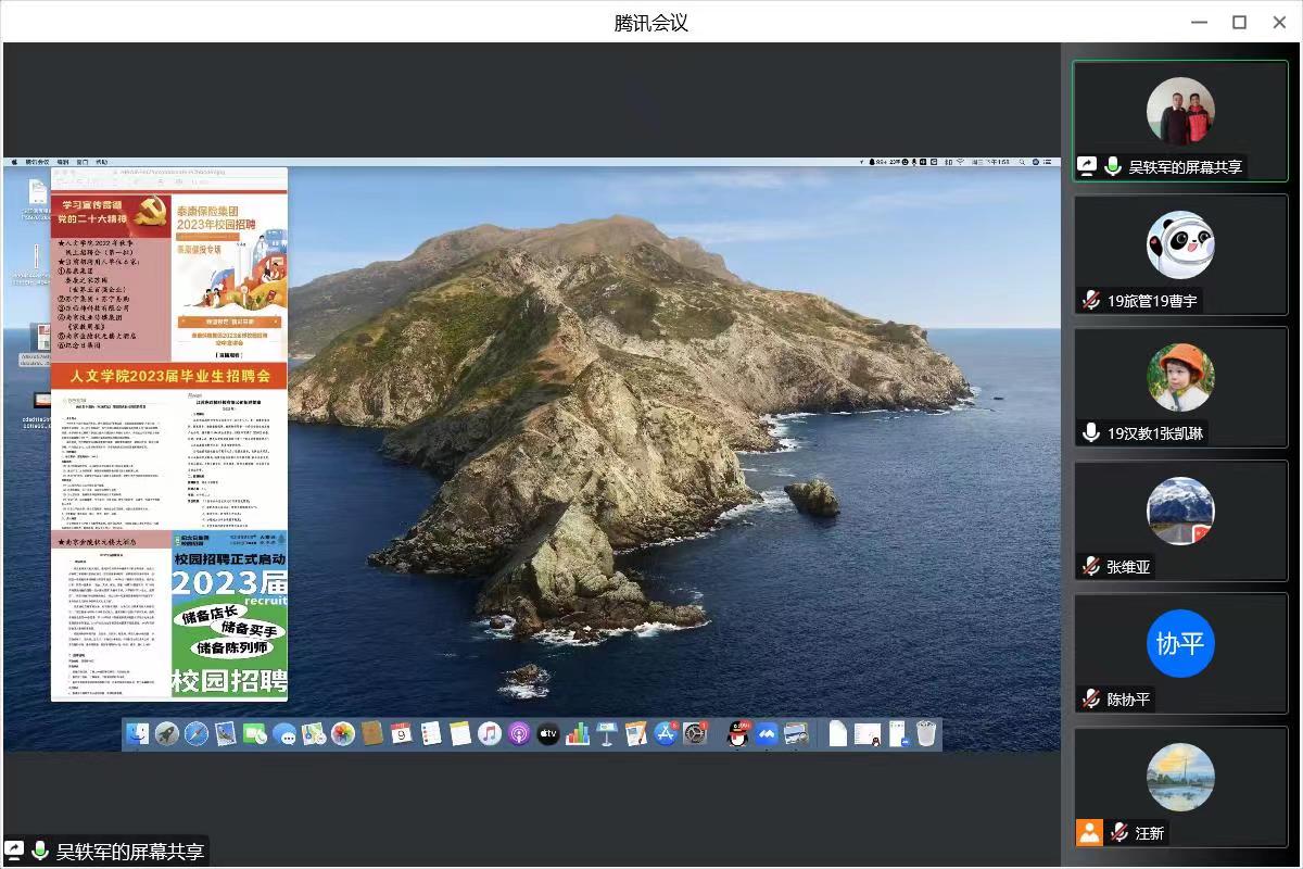 为了扎实做好人文学院2023届毕业生就业工作,11月9日下午,因疫情原因学院召开线上2023届毕业生就业工作动员会。人文学院党委书记吴轶军、院长张维亚、党委副书记韩铖、副院长赵步阳、各系主任、2023届毕业班辅导员和班主任、2023届毕业班学生代表参加了会议。会议由人文学院院长张维亚主持。