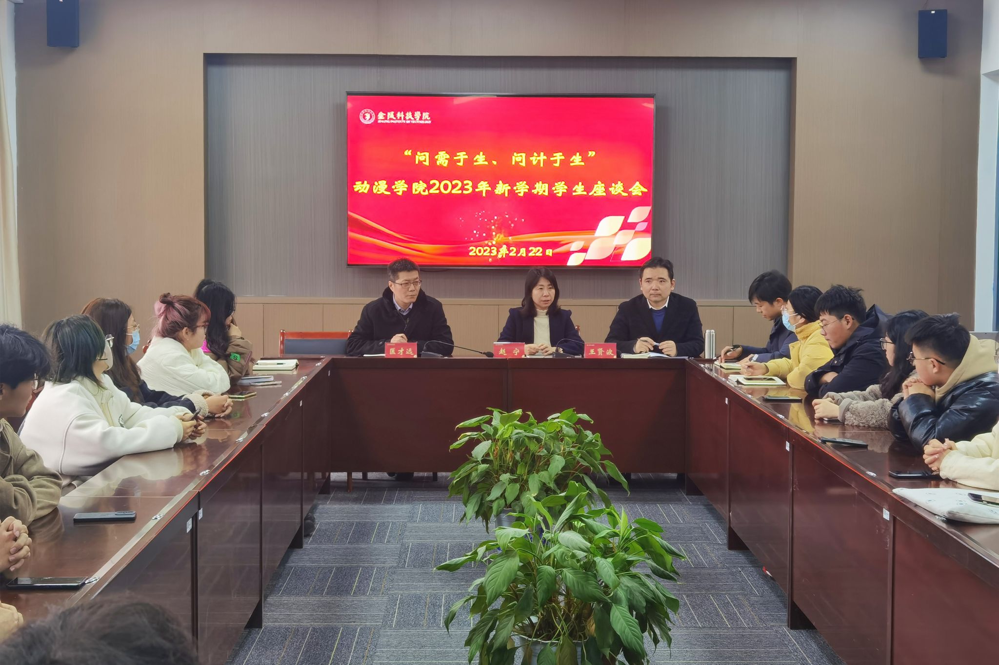 2月22日,动漫学院在7406会议室召开2023年新学期学生座谈会。学院党总支部书记赵宁、院长王贤波、副书记副院长匡才远,教学管理办公室副主任夏鷃晏老师、全体辅导员及各班学生代表参加座谈。会议由学院院长王贤波主持。