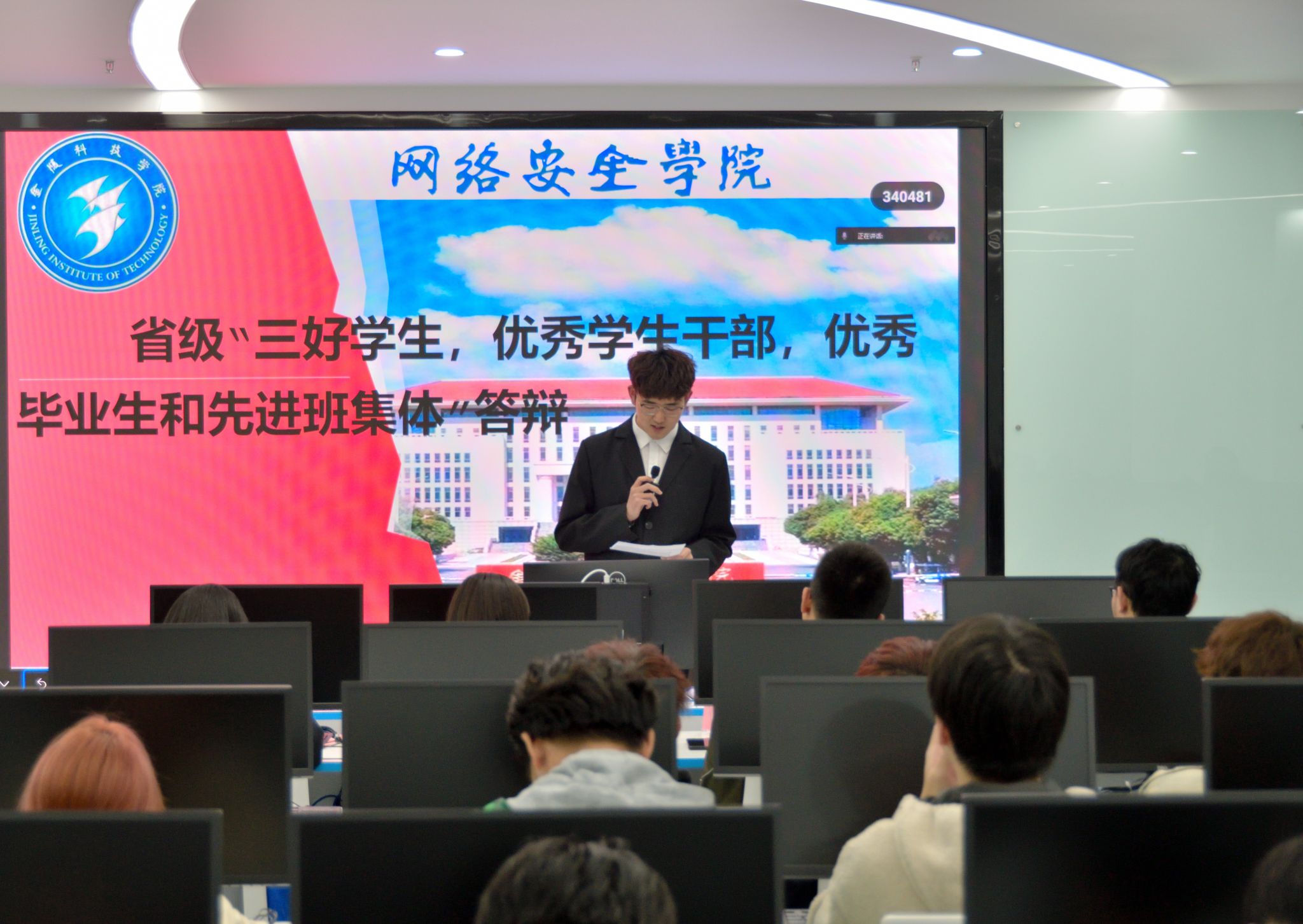 本次评审采取了线上、线下答辩及评审的形式,参选“省级三好学生”和“省级优秀学生干部”的七位候选人一一进行答辩,其次是参选“省级优秀毕业生”的吴尚展同学以线上的方式进行云答辩,最后由19信息安全(嵌入式培养)和20信息安全的代表为其所在班级进行“省级先进班级体”答辩。大会第二项进入紧张的投票环节,根据选手个人能力保持公正、客观、中立的态度为候选人打分,大会最后由辅导员马晓辉老师进行总结。