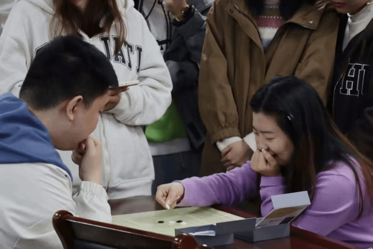 比赛分初赛、复赛、决赛三轮。初赛以一局定胜负,选手们全神贯注,秉持着“落子无悔”的信念,每一步谨慎思考,再三权衡,两轮过后,共决出13名选手进入复赛。复赛采取三局两胜制,最终7位选手在能力和耐力的双重考验下进入决赛。决赛同样采取了三局两胜制,但取消了禁手,共进行两轮。在复赛和决赛阶段,徐冰洁老师也加入其中,与选手们展开了精彩博弈。决赛进入到白热化阶段,现场氛围热烈高涨,观众们都不免屏住呼吸,棋手们仍不慌不忙,沉着冷静。经过一番激烈角逐,最终魏浩天荣获一等奖,郭海欣荣获二等奖,吴雨聪、乔麟道越荣获三等奖。