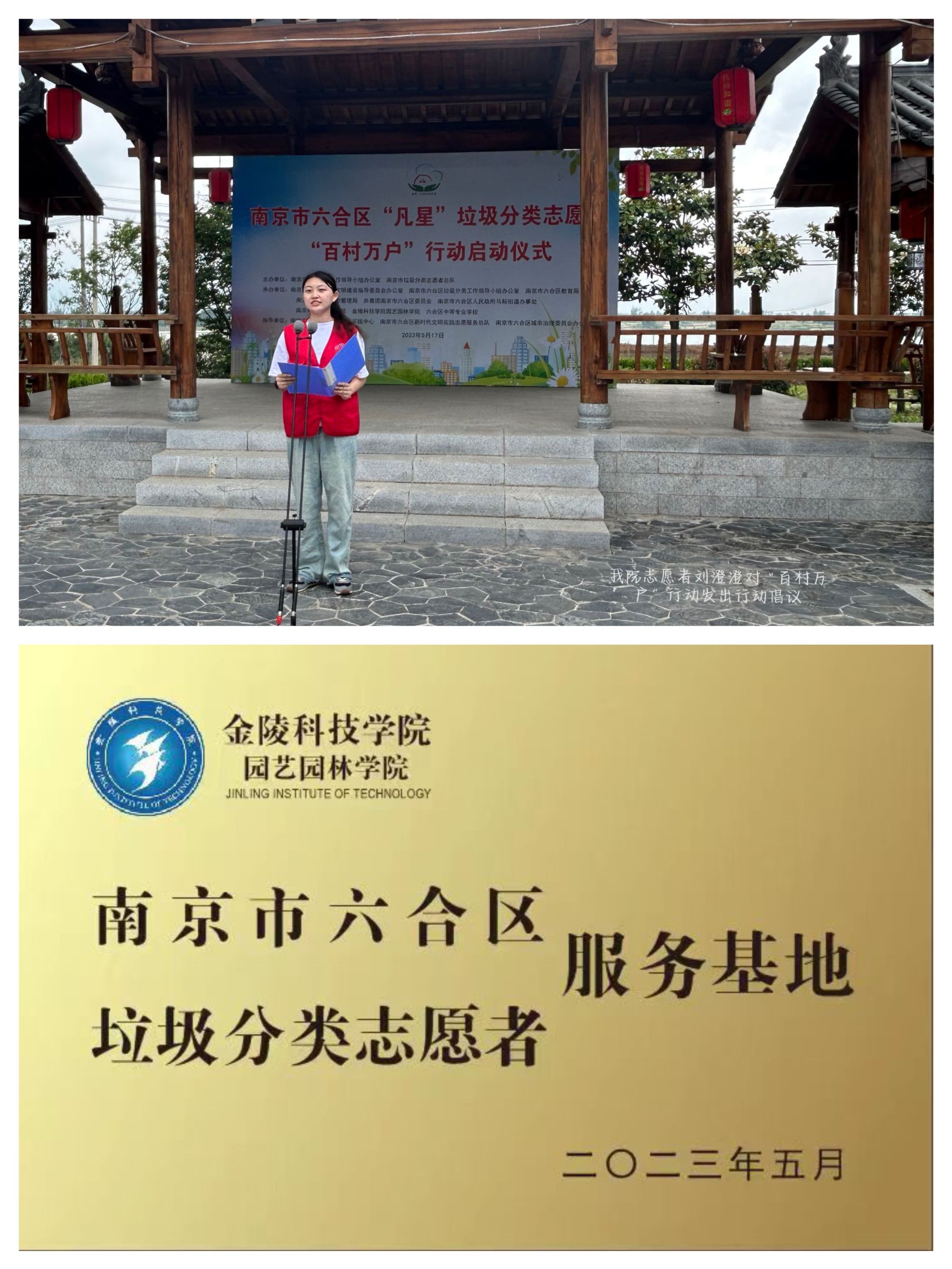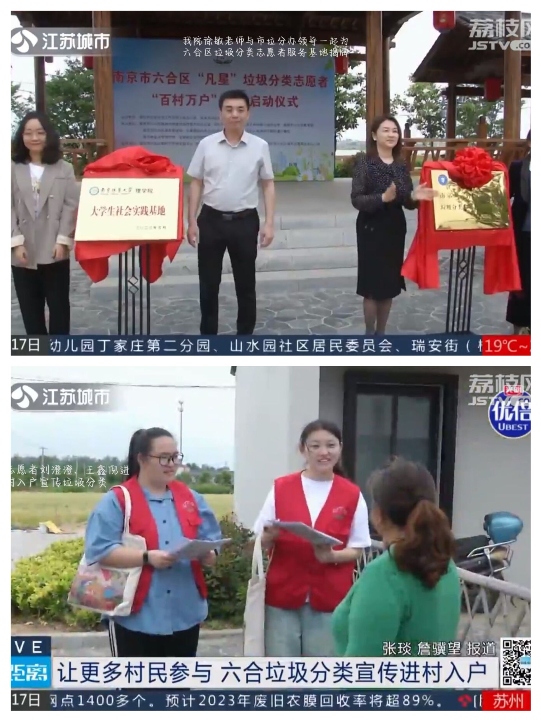 为提升居民对垃圾分类工作的参与热情,提高垃圾分类居民知晓率。2023年5月17日,园艺园林学院垃圾分类志愿服务队在院团总支书记徐敏老师带领下参加了南京市六合区“百村万户”垃圾分类志愿服务行动。