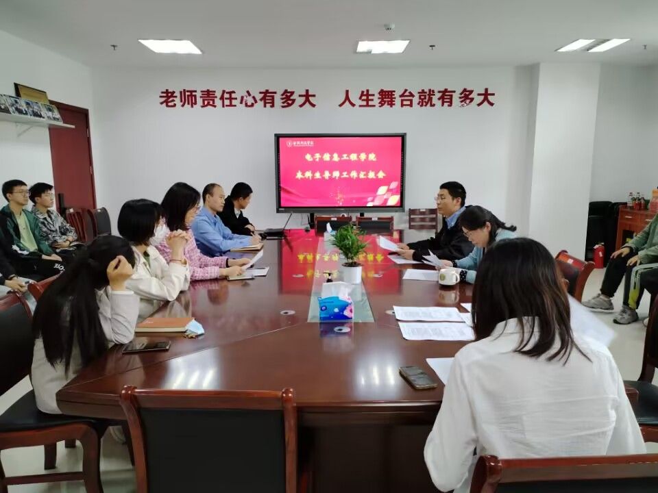为加强本科生导师队伍的建设与管理,不断提高人才培养质量,电子信息工程学院于5月23日在科技楼4号楼410召开2022-2023学年本科生导师汇报工作会。学院党委副书记吴有龙、副院长杨娟以及全体辅导员参加了本次会议。