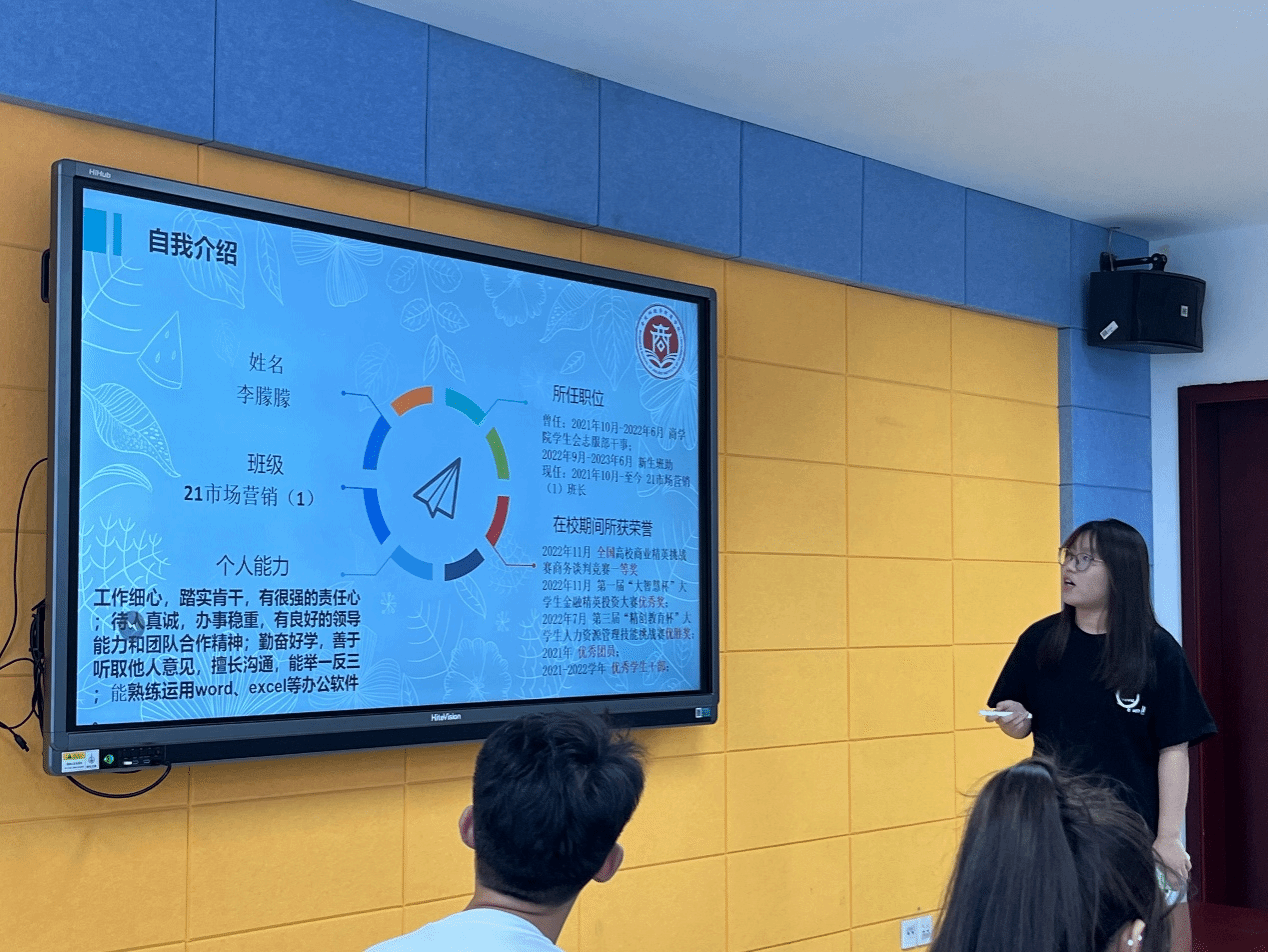 面试开始,由商学院团总支书记徐冰洁老师介绍选拔程序、选聘标准和注意事项,本次面试按照专业顺序分组进行,每组选手依次演讲,随后抽题作答,最后老师对相关同学进行提问。