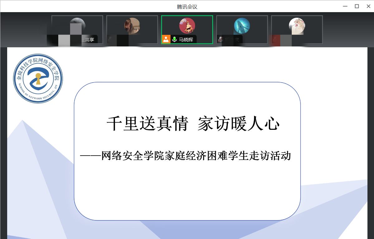 为了全面落实党的教育方针,大力推进资助育人,做好贫困生精准资助工作,网络安全学院开展暑期家庭经济困难学生走访慰问活动,本次活动网络安全学院采取线上线下相结合的方式,扩大政策宣传范围,加强宣传力度,深层次、多方位地开展此次工作。