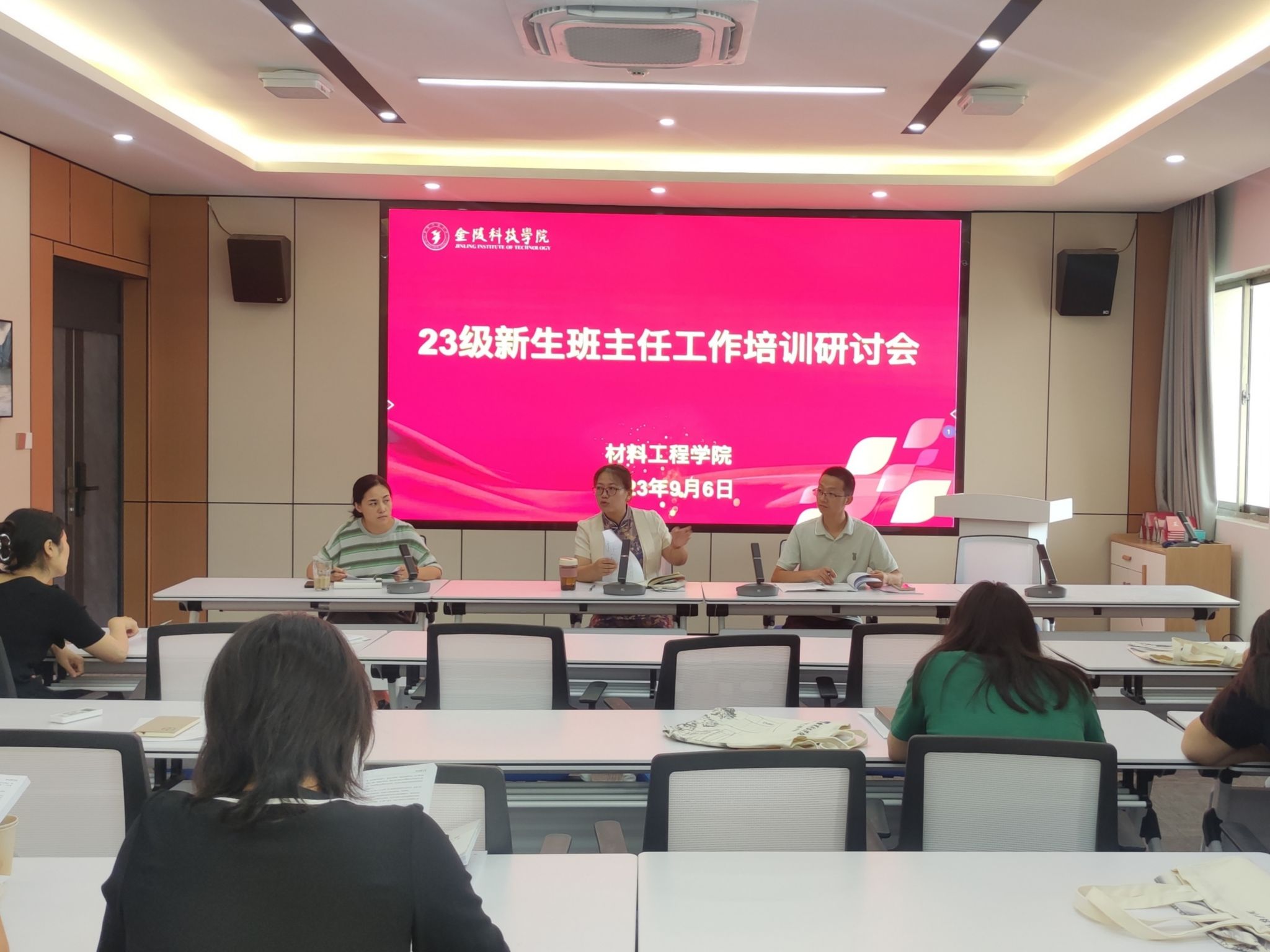 初秋九月,迎新启程。为扎实做好2023级新生迎新工作,使新生班主任进一步熟悉工作内容,把握岗位职责,以暖心的服务迎接新生入学报到,材料工程学院于9月6日下午在知行楼A506会议室召开23级班主任迎新工作培训研讨会。会议由党委副书记陈智慧主持,党委书记叶原丰、院长郝凌云、副院长管航敏出席会议,院学工办主任、23级辅导员和班主任参加。