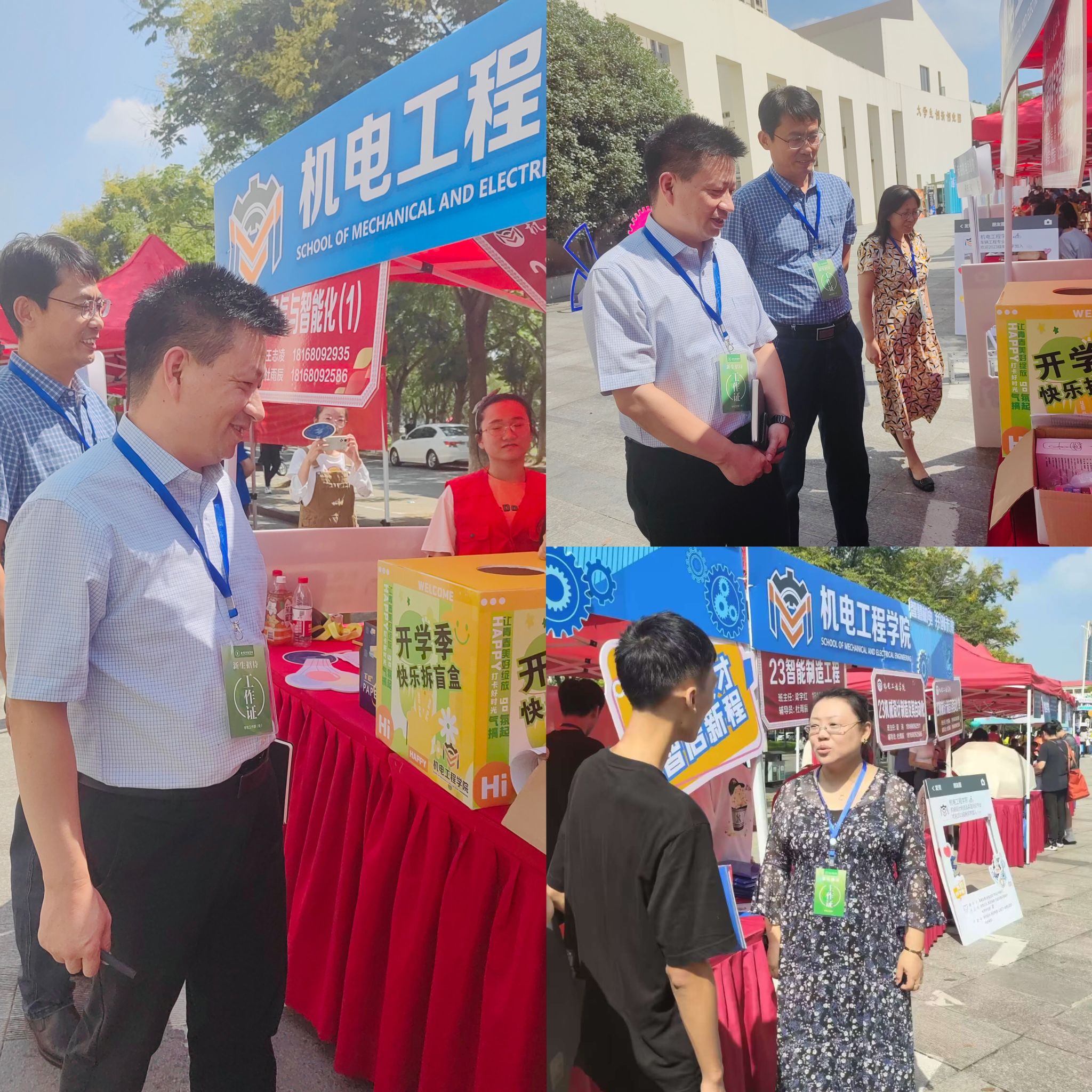 学院在迎新工作点设置“党员先锋岗”、“绿色通道”、“志愿服务点”等,为新生提供“一站式”的引导和服务。迎新志愿者们活跃在校园的各个角落,对新生进行指引、提供新生咨询、协助新生搬运行李、疏通拥堵道路等,同时为新生讲解校园防诈骗知识,为新生送上机电温暖。每一名志愿者各司其职,用饱满的热情、踏实的行动彰显了机电学子的青春风采。
