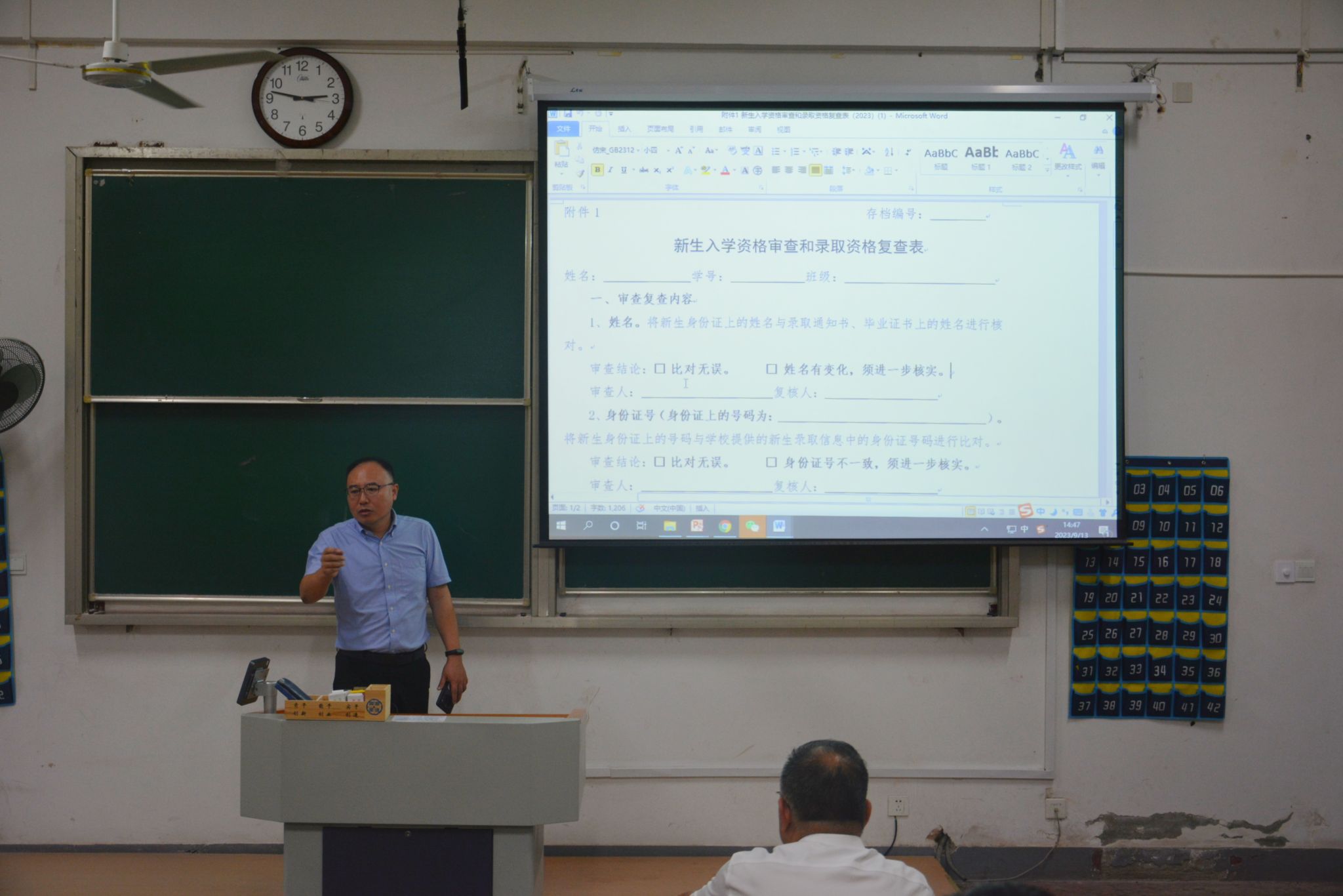 学院高度重视新生入学工作,要求新生各班严格落实相关资格审查措施,不怕繁琐、逐一核实。会议上,要求辅导员、班主任老师要严格按照学校要求将身份证、准考证、毕业证书等原始档案材料与考生本人逐一对照审查,确保准确性、真实性、统一性。随后,学院布置了新生入学资格审查和录取资格复查工作日程安排和存疑信息上报处置办法。
