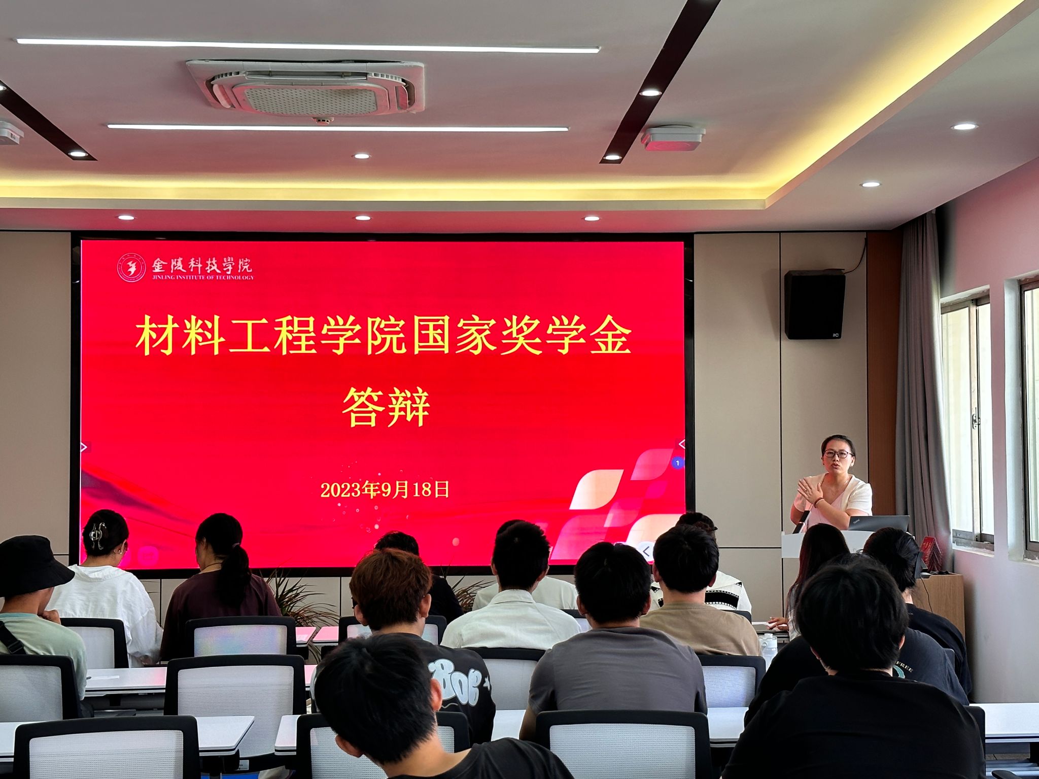 为激励学生勤奋学习、积极进取,进一步提高实践和创新能力,材料工程学院于9月18日中午在知行楼A506召开了2022-2023年国家奖学金答辩会。本次答辩共11名候选人参与,材料工程学院党委副书记陈智慧、全体辅导员、各班班长担任评委,多名新生代表现场观摩。