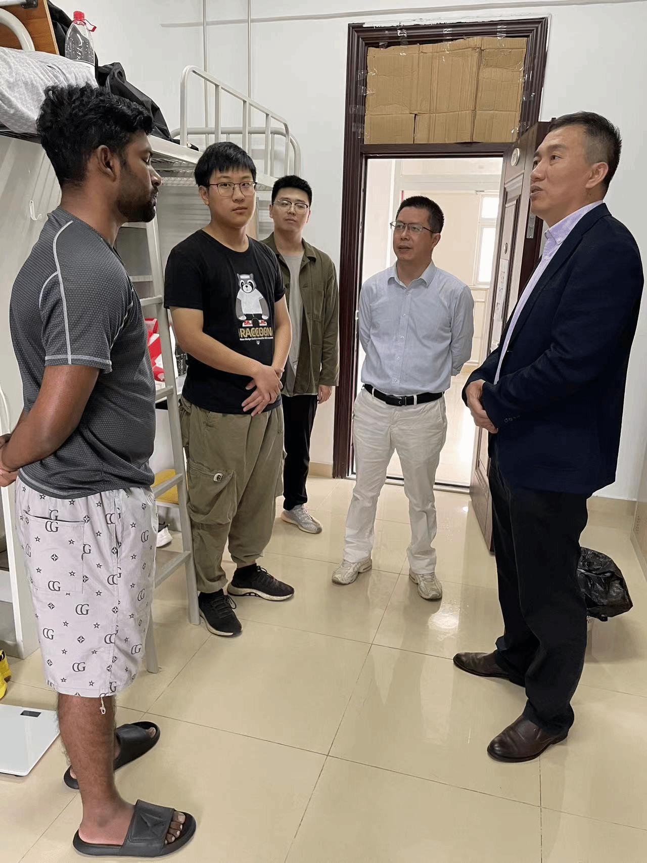 走访慰问过程中,学院领导亲切地与研究生新生进行交谈,了解同学们来校后的感受及对学校的适应程度,耐心倾听新生们的反馈。学院领导嘱托他们,作为开云在线首届研究生是幸福的,希望他们做好表率作用,以积极向上、奋发有为的新时代学生风貌开启未来的三年学习与科研,尽快融入开云在线这个大家庭。