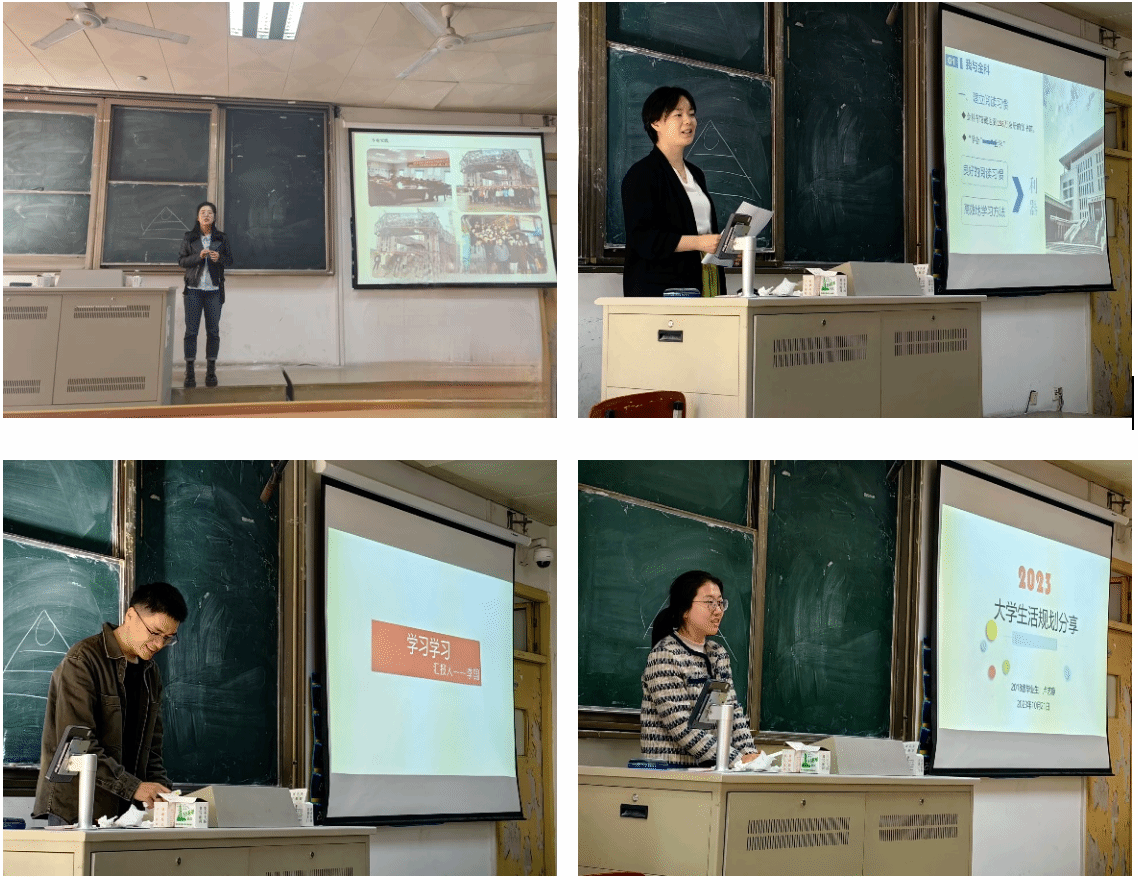来自南京市公共工程建设中心的校友陈姝姝以《从金科出发,一切皆有可能》为题,从我与金科、我与土木工程、土木工程与你们三个方面出发,讲述了大学四年学习体会和毕业后八年工作心得;来自南京城镇建筑设计咨询有限公司的李国以《学习学习》为题,结合在校学习与竞赛、工程实践与创新和建议与展望,向新生们提出了要重视学习和学会学习的期望;正在东南大学攻读博士学位的卢艺静以《大学生活规划分享》为题,分享了学习、实践、创新和生活等多方面的学习经验。