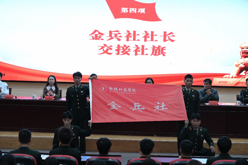 为充分发挥学生自我教育、自主管理、自我服务的主体作用,校党委人民武装部于10月27日下午在江宁校区科技楼报告厅举行金兵社换届大会暨国旗护卫队入队仪式。校党委人民武装部副部长沐阳、校党委人民武装部国防教育科全体人员、金兵社、校国旗护卫队全体同学参加。会议由国防教育科李媛媛老师主持。