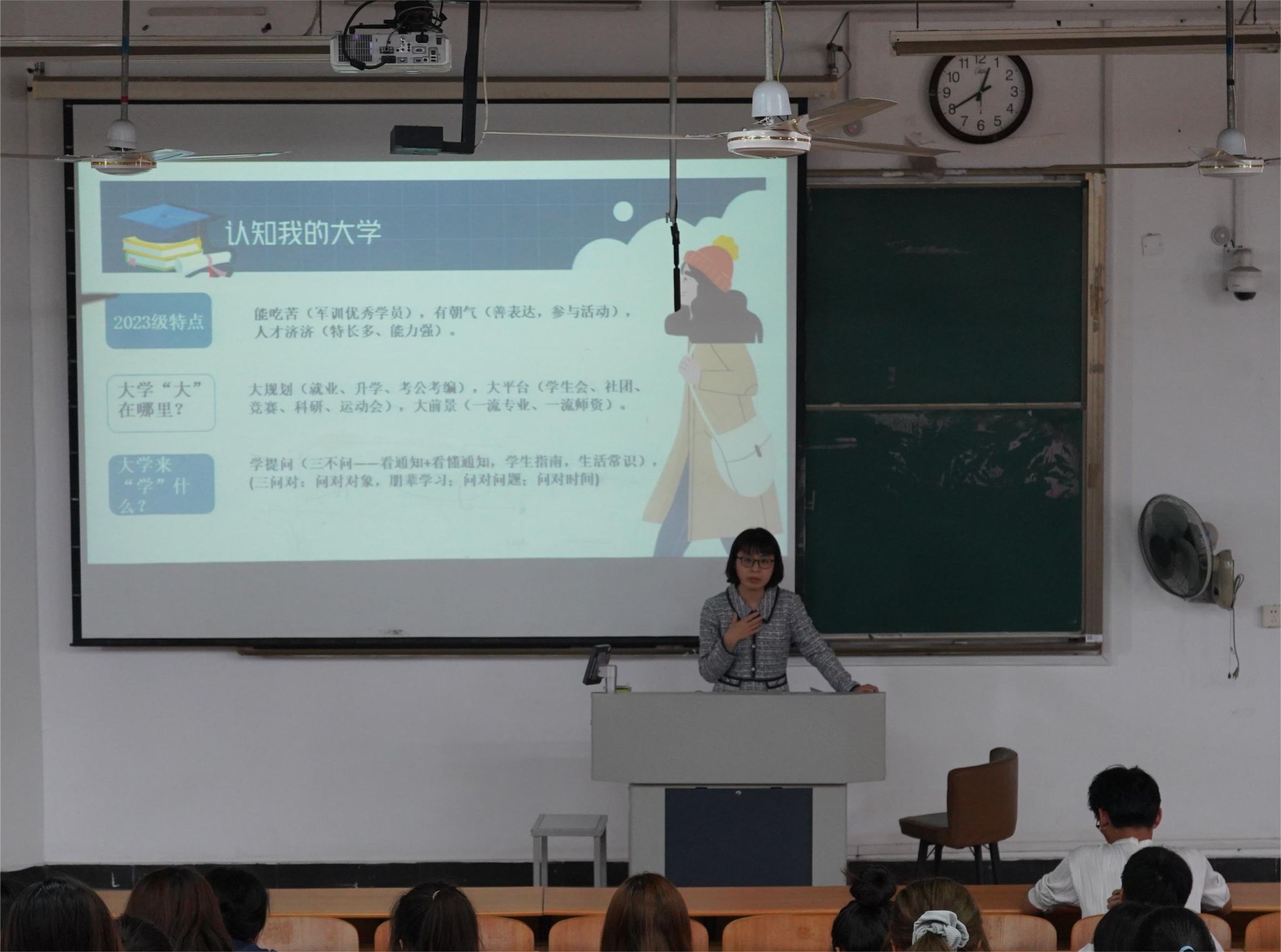 首先,刘思思老师对新同学的到来表示热烈欢迎,希望大家在大学做好规划,积极参与各项活动,提升能力素质。并结合《学生指南》对学籍管理规定和同学们关心的相关问题等进行讲解和答疑。