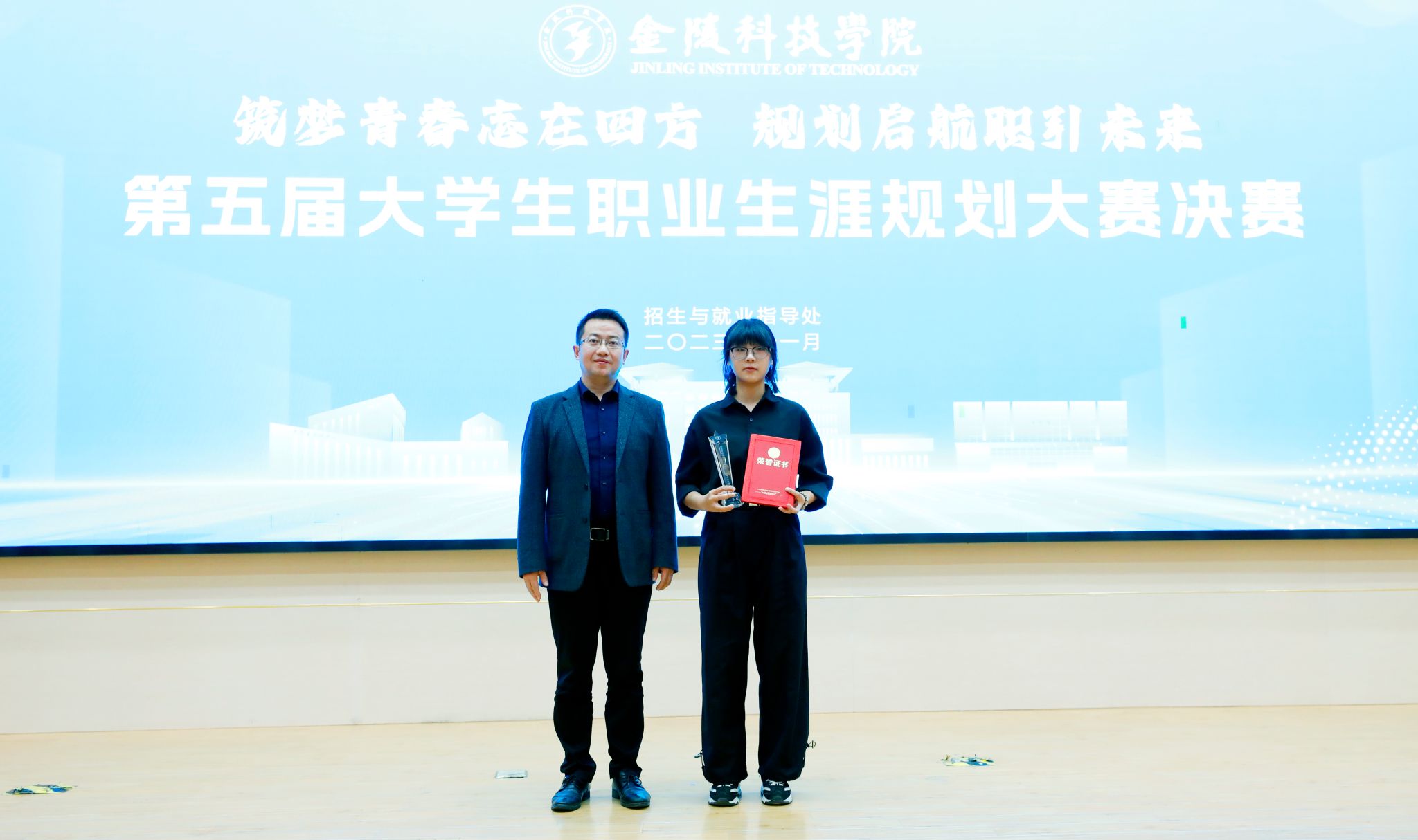 近日,我院师生在校第五届职业规划大赛中喜获佳绩,21建筑学(3)班薛乔云获得成长组一等奖、20建筑学(1)班马艺华获得就业组三等奖,辅导员鲍飞豹获优秀职业生涯规划指导教师称号。