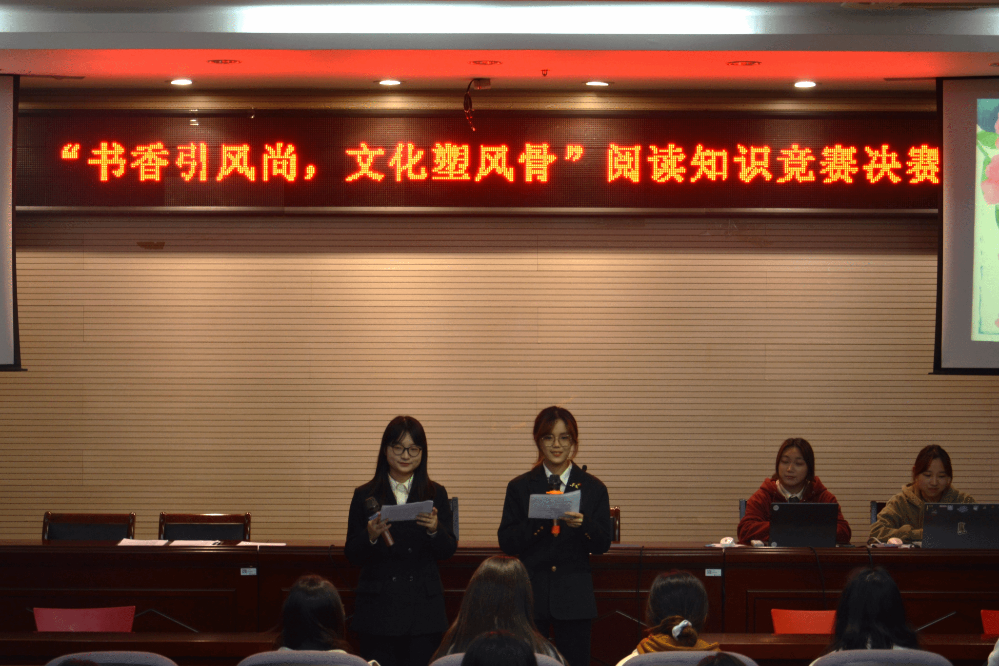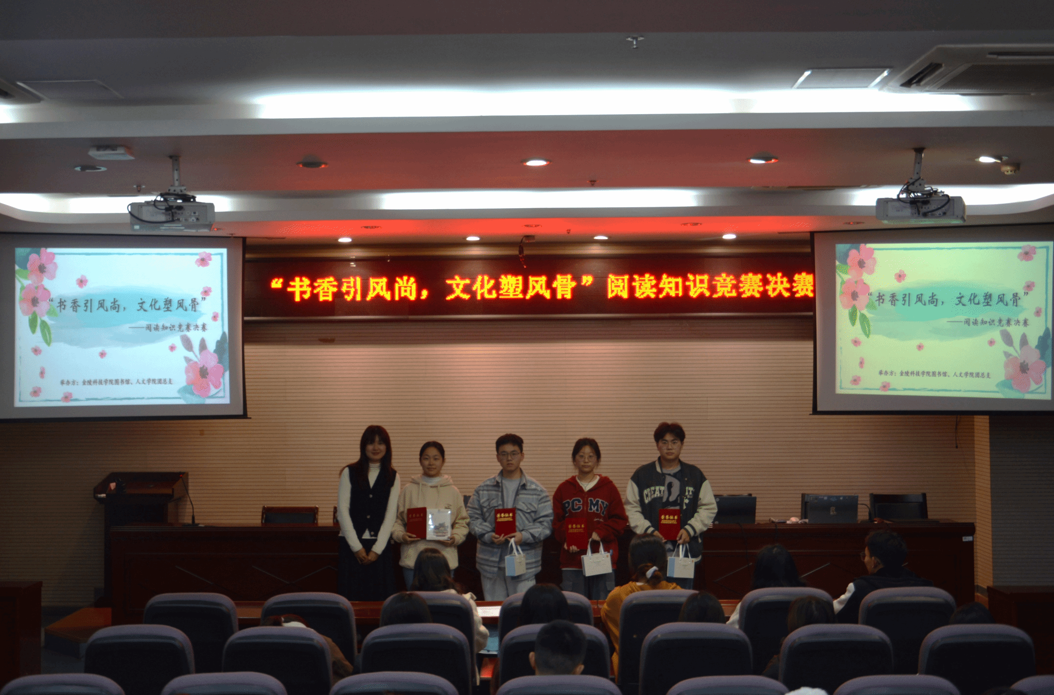 为引导学生积极阅读经典,从阅读中汲取力量,营造读好书、善读书的书香校园。1117日晚18:30,在幕府校区图书馆报告厅,我校图书馆与人文学院联合举办了“书香引风尚,文化塑风骨”阅读知识竞赛活动。学科服务部副主任张贤、人文学院团总支书记高欢欢,与各年级学生代表百余人参加了此次活动。