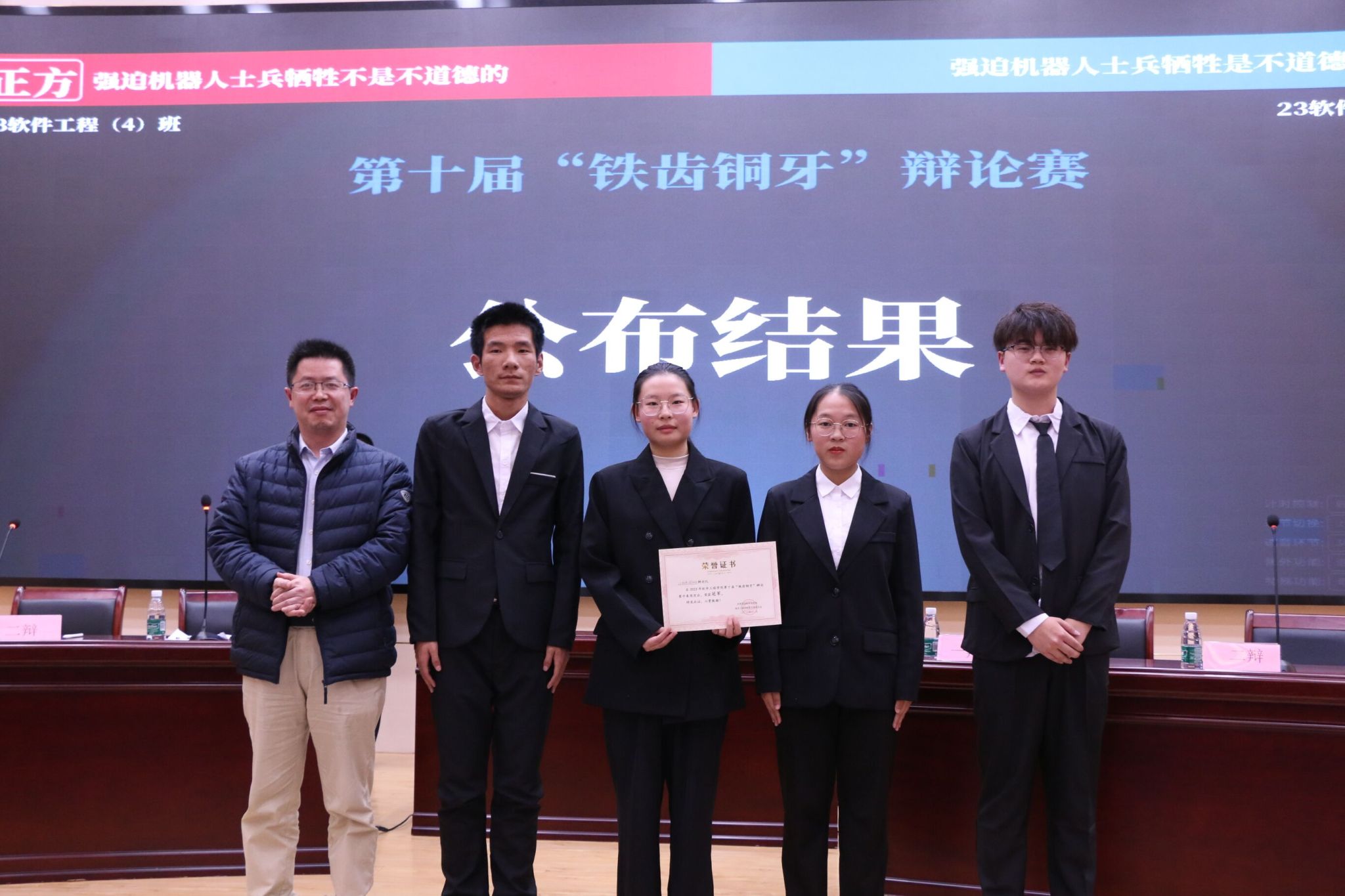 据悉,软件工程学院第十届“铁齿铜牙”辩论赛经过初赛、半决赛,历时20天,23软件工程2班和23级软件工程4班顺利挺进本次决赛。本次辩论赛决赛双方就“战争中强迫机器人牺牲是否道德”辩题展开了精彩的辩论。开篇立意环节,正反双方进行了充满理性的自我论述,正反双方各执一词,陈述时条理清晰。辩论环节,辩手们坚定的立场、清晰的观点、精湛的论技赢得了观众们不断掌声和喝彩。辩论赛尾声,校辩论队队长巩龙浩分别就辩论双方的观点、立意、技巧表现进行点评,提出了很多有益的建议。经过激烈的角逐,23级软件工程4班脱颖而出,获得冠军,23级软件工程2班陈慧萍同学获得最佳辩手奖。
